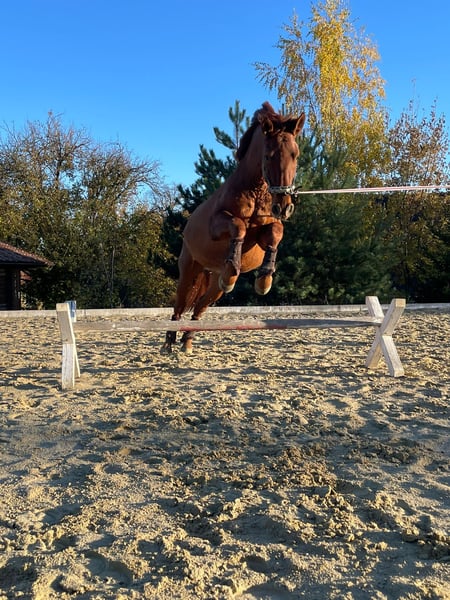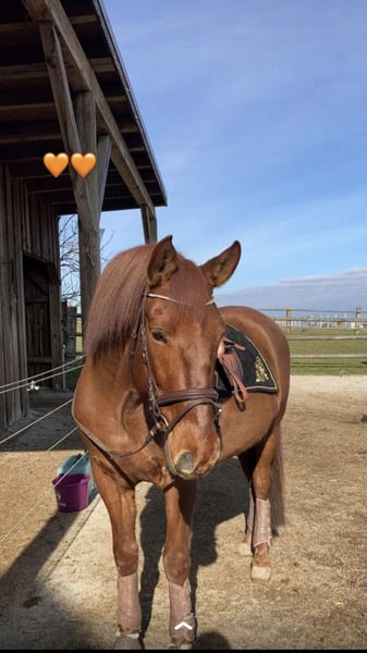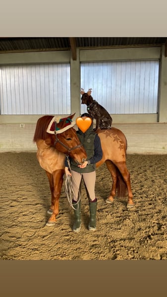 Das Reiten im Gelände macht besonders Freude mit ihm, er ist es gewohnt alleine zu gehen aber auch in Gruppen funktioniert es einwandfrei, da er generell ein sehr verträgliches Pferd ist. Er kennt es auch, dass ein Hund beim Reiten nebenbei mitläuft. Sollte bei dir in der Nähe ein Bach oder eine Möglichkeit zu schwimmen sein fürs Pferd, er kennt auch das - und liebt es.