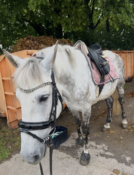 Con il cuore pesante abbiamo deciso di affidare il nostro amato castrone Gigolo (nel passaporto Rómeo) a mani nuove e amorevoli. Gigolo è un castrone spagnolo di 12 anni, con un'altezza al garrese di 1,52 m. Per me è stato il mio primo cavallo personale – un vero cavallo di cuore, che mi ha insegnato tantissimo e mi ha regalato molti momenti indimenticabili. Per questo motivo, lo immagino perfetto come cavallo per adolescenti, per la famiglia o anche come affidabile compagno di passeggiate. Che si tratti di uscite tranquille, di saltare un tronco in campagna o di galoppare libero sui campi – Gigolo rimane sempre calmo, obbediente e resistente ai nervi. È un cavallo sincero, su cui si può sempre contare. Anche in libertà di salto, dimostra entusiasmo per il lavoro e salta fino a 1,20 m. Gigolo ha una diagnosi di asma equina, non cronica, quindi deve essere inalato regolarmente. Riesce a gestirlo bene. Porta con sé la sella Kieffer Vs e il suo inalatore equineb. Per ulteriori domande e video, contattare il 0172 8070464, solo tramite WhatsApp, nessuna chiamata. ❗ Nessun commerciante, nessuna attività scolastica. Desideriamo per Gigolo una casa amorevole, dove venga apprezzato come merita.