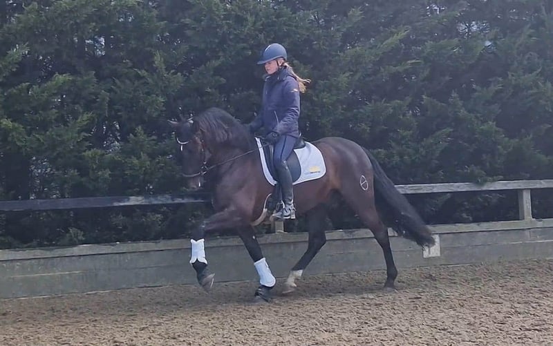 PRE Baroque gelding almost 13 years old! 1m64 Good xRays, can be send Vaccinations (Tetanus, Influenza and Rhino) are up to date Dentist comes every year in December No stable vices, very easy and kind! Very healthy and sound horse This amazing beautiful boy is looking for his new partner in crime. Due to circumstances from the owner it’s sadly they had to make the choice of finding a new partner for him. He knows exercises from the 3th level and flying changes ,but because of 6 months out of work all need to build up again. We are starting his training now for a few weeks and he is climbing back to where he was, that's why he's available at a lower price. He has a super super sweet character it’s a very honest horse. But he's not yet suitable for beginners or insecure riders, he's bred for sport. He has expierence in dressage, working equitation clinics and did a lot of hacks, even in the sea! He has a clean x rays check and is located in Belgium but we can help with Traces and Transport. Bred in Spain by https://yeguadalasnegrillas.com/
