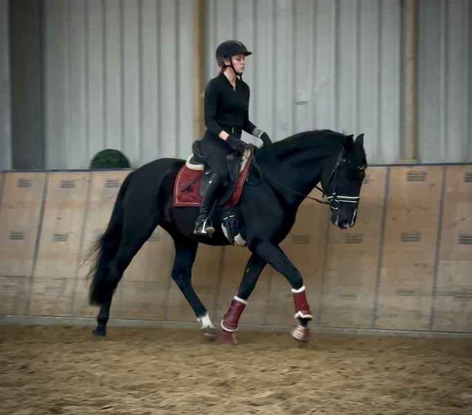 Name: Zahareno VIII Breed: P.R.E. (Pure Spanish Horse) Gender: Gelding Date of Birth: December 24, 2010 Age: 15 years Height: 15.1 hh Color: Black (Rappe) Pedigree: Available Temperament: Reliable, people-oriented, curious, intelligent, brave Training/ suitability: ridden, leisure riding, dressage, show jumping, working equitation Trail Experience: dependable, confident, comfortable alone and in a group Health: dewormed, vaccinated, barefoot, teeth checked, osteopathically treated Stabling: box stall, open stable Special Features: very comfortable rider, shoe and loading friendly, gelding herd, suitable for children, school horse Please note that these characteristics are based on our personal assessment and do not constitute guaranteed traits. Price: €6,500 (gross price) Have we piqued your interest? To give you a better impression of Zahareno, we would be happy to send you a video of him riding. Of course, we are available for a detailed description of the horse, personal consultation, and to answer all your questions via phone. Please feel free to contact us anytime via WhatsApp or call us at: +49 151 19487595 Our calling hours are daily from 7:00 AM to 1:30 PM and again from 8:00 PM. We look forward to hearing from you! A clinical or radiological purchase examination can be carried out by your veterinarian of choice. Zahareno can be safely and comfortably delivered to his new home. We take care of all preparations and transportation so that your new horse arrives stress-free, well cared for, insured, and in good health. Currently, we offer a carefully selected variety of horses for sale. With us, you are sure to find your dream horse. Feel free to visit us on our homepage: www.marvinsroyalhorses.de. Dear customers, we are happy to introduce you to our horses and offer grooming, tacking, lunging, ground work, and trial riding in the riding hall, on the arena, or in the field to get to know your new family member better. This costs €40 for one horse and €30 for each additional horse and will be refunded upon purchase. Our address: Ferdinand Grube 50 53577 Neustadt-Wied Google Maps: marvinsroyalhorses