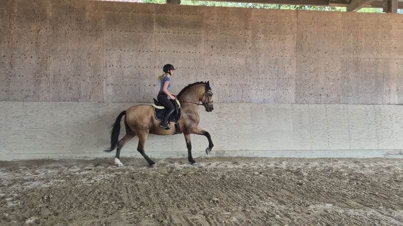 Verkaufe PRE-Wallach Zum Verkauf steht ein eleganter PRE-Wallach, in der seltenen Bayo Farbe, geboren im Jahr 2011. Mit einem Stockmaß von 167 cm vereint er Größe und Präsenz. Das Pferd ist ideal für Dressurbegeisterte, Working Equitation, Doma Vaquera....die ein zuverlässigen und talentierten Partner suchen. Seine ruhige Art im Umgang und sein ausgeglichenes Wesen, aber mit sehr viel GO unter dem Reiter, machen ihn zu einem tollen Begleiter im täglichen Training und der Arbeit, er braucht einen erfahrenen Reiter der ihn in seinem Temperament unterm Reiter zu schätzen weiß. Bei Interesse und für weitere Informationen stehe ich gerne zur Verfügung. Ein Besichtigungstermin ist nach Vereinbarung möglich. Er ist kein Mix! Reinrassiger PRE mit Papiere!