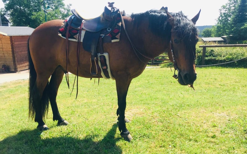 Sehr lieber und verschmuster Wallach zu verkaufen. Er ist sehr fein geritten, liebt die Bodenarbeit und das Ausreiten, problemlos alleine oder in der Gruppe. Er kennt Offenstall und Boxe, in der Herde absolut unproblematisch, ein sehr soziales Pferd. Er ist gesund, schmiede-und verladefromm, er geht auch sehr gerne ins Wasser. Bei bedarf kann ein passender Westernsattel dazu verkauft werden