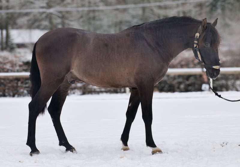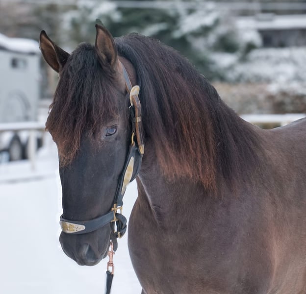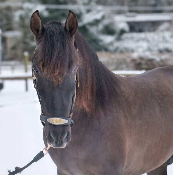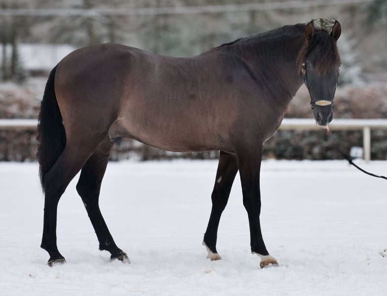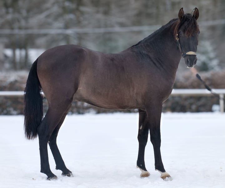Name: Bravo Aran Breed: P.R.E. (Pure Spanish Horse) Gender: Gelding Date of Birth: January 1, 2023 Age: 3 years Height: 15.6 hh Color: Dark Chocolate Brown Pedigree: With pedigree Temperament: Friendly and people-oriented, eager to learn, reliable, patient, curious, intelligent, brave, calm Training/ suitability: Lunged, suitable for leisure riding, dressage, baroque riding, working equitation Trail Experience: Trustworthy, fearless, resilient, good in groups Health: Dewormed, vaccinated, barefoot, eczema-free, teeth checked, osteopathically treated Stabling: Box stall, paddock Special Features: Good basic gaits, stands well for farrier and loading, herd-compatible Please note that the above characteristics are based on our personal assessment and do not constitute a guarantee. Price: €7,900 (gross) Have we piqued your interest? To give you a better impression of Bravo Aran, we would be happy to send you a video of him riding. Of course, we are available for a detailed description of the horse, personal consultation, and to answer any questions you may have, also by phone. Feel free to contact us anytime via WhatsApp or call us at: +49 151 19487595 Our phone hours are daily from 7:00 AM to 1:30 PM and again from 8:00 PM. We look forward to hearing from you! A clinical or radiological pre-purchase examination can be carried out by your veterinarian of choice. Bravo Aran can be safely and comfortably delivered to his new home. We will handle all necessary preparations and transportation so that your new horse arrives stress-free, well-cared-for, insured, and in good health. Currently, we offer a carefully selected range of sale horses. With us, you are sure to find your dream horse. Feel free to visit our website at: www.marvinsroyalhorses.de Dear customers, we are happy to introduce you to our horses. You are welcome to lead, groom, saddle, longe, do groundwork, or try riding in the riding hall, on the arena, or in the field to get to know your new family member better. The fee is €40 per horse, with each additional horse €30, and will be refunded upon purchase. Our address: Ferdinand Grube 50 53577 Neustadt-Wied Google Maps: marvinsroyalhorses