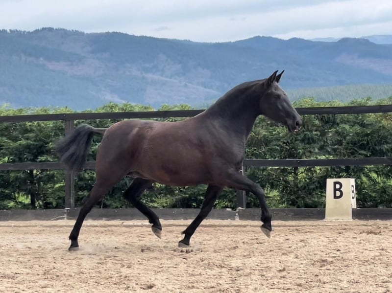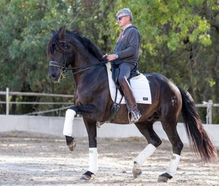 2 jaar oude PRE-hengst, bloedlijnen Yeguada Militar en Escalera. Op de laatste foto is zijn merrie te zien. Zijn vader komt uit de Piro-vrije zone. Hij neemt deel aan Grand Prix niveau dressuur.