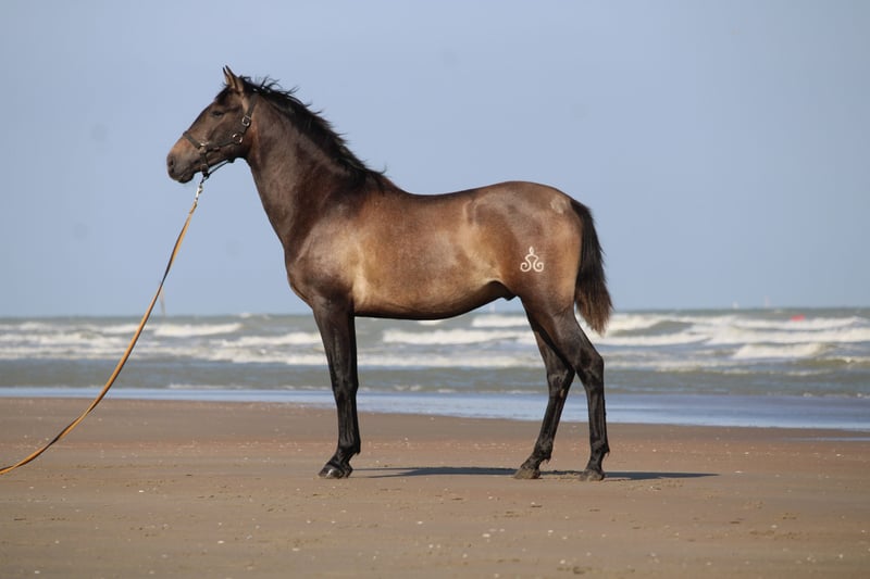 Baronet del Abadia was born to us on 26.02.2023 from our broodmare Gracia IV and Doblón-TR (last 4 photos). Baronet is a particularly beautiful and strongly built foal. He has a very good walk, an elastic trot and a spacious upward canter. He certainly owes those movements in part to his sire Doblón-TR, elite stud and son of Ermitaño III, first ever elite stud within the PRE. Baronet is a dynamic, athletic type. We see a very bright future for him in dressage. At the end of August, he won a gold medal in the 1-year-old stallion series at the Campeonato Centro Europeo in Bruges. There he received the best score for both morphology and movements. Baronet is a deaf horse, he is very respectful and willing to work. Trailer, farrier, vet etc. are no problem at all. Whoever wants to give him the time to develop and grow together with him will get a lot back from Baronet. More info via elabadia@telenet.be or +32(0)489361015. We are located in Belgium, region Veurne. Always welcome to visit our breeding farm !
