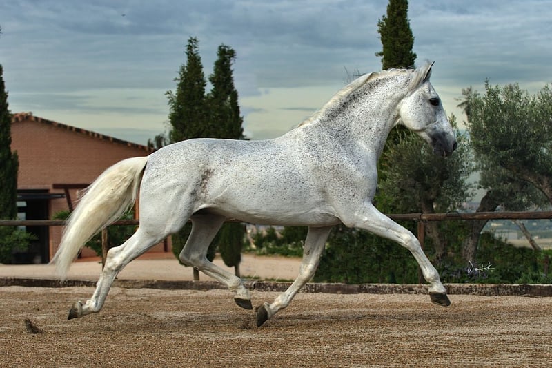 Baronet del Abadia wurde bei uns am 26.02.2023 aus unserer Zuchtstute Gracia IV und Doblón-TR (letzte 4 Fotos) geboren. Baronet ist ein besonders schönes und kräftig gebautes Hengstfohlen. Er hat einen sehr guten Schritt, einen elastischen Trab und eine raumgreifende Bergaufgaloppade. Diese Bewegungen verdankt er sicherlich auch seinem Vater Doblón-TR, Elitehengst und Sohn von Ermitaño III, dem ersten Elitehengst der PRE. Baronet ist ein dynamischer, athletischer Typ. Wir sehen für ihn eine sehr gute Zukunft in der Dressur. Ende August gewann er beim Campeonato Centro Europeo in Brügge eine Goldmedaille in der Serie der 1-jährigen Hengste. Dort erhielt er die beste Bewertung sowohl für die Morphologie als auch für die Bewegungen. Baronet ist ein taubes Pferd, er ist sehr respektvoll und arbeitswillig. Anhänger, Hufschmied, Tierarzt, etc. sind kein Problem. Wer ihm Zeit geben möchte, sich zu entwickeln und mit ihm zusammen zu wachsen, wird viel von Baronet zurückbekommen. Mehr Infos über elabadia@telenet.be oder +32(0)489361015. Wir befinden uns in Belgien, Region Veurne. Sie sind jederzeit herzlich eingeladen, unseren Zuchtbetrieb zu besuchen!