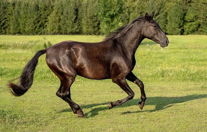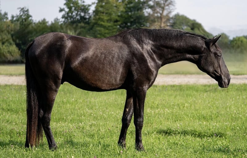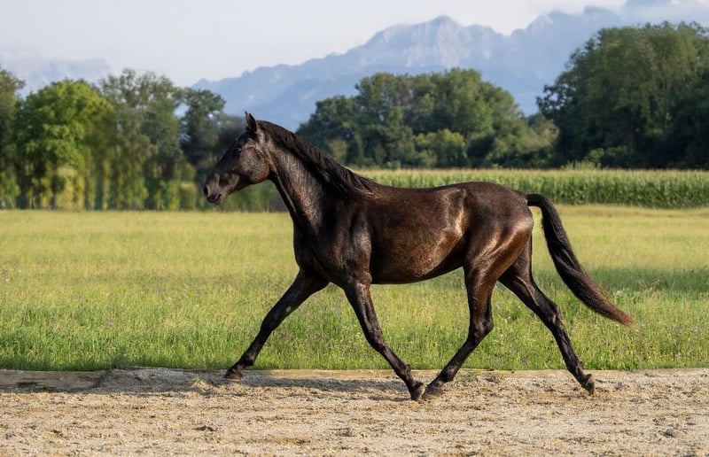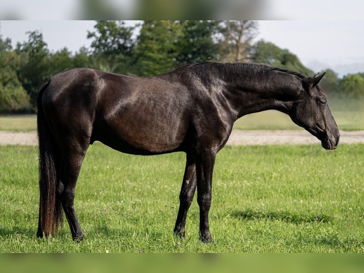 Unsere Tesoro XXXIII ist ein 3 jähriger reinrassiger PRE in schwarz ohne weißem Abzeichen. Seine tolle Abstammung spricht auch für sich. Er ist ein sportlicher Typ mit einem stolzen Stockmaß von bereits 162 und wird, aufgrund seiner auch großen Eltern, bestimmt noch ein Stück wachsen. Seine tollen Bewegungen lassen im Dressurviereck keine Wünsche übrig. Sein unglaublich gelassener Charakter macht ihm zu einem traumhaften Wegbegleiter mit dem man später sicher tolle Ausritte machen kann und sich in jeder Situation auf ihn verlassen kann. Beim Spaziergehen zeigt er das bereits wie mutig und unerschrocken er ist. Auch das springen macht ihm sehr viel Spaß. Er wurde bei uns geboren und auch seine Mama und weitere Geschwister können am Hof besichtigt werden. Der Vater steht bei München. Natürlich ist er gesund, wurde regelmäßig entwurmt, kennt Schmied und Verladetraining.