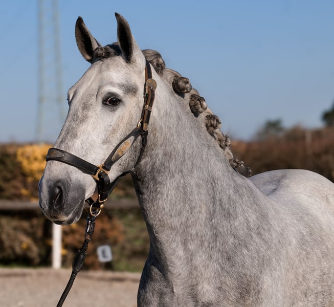 Name: Bravio Segura Rasse: P.R.E Geschlecht: Wallach Geburtsdatum: 28.07.2022 Alter: 4 Stockmaß: 1.53m Farbe: Schimmel Abstammung: mit Abstammungsnachweis Charakter: menschenbezogen, lernwillig, verlässlich, neugierig, intelligent, mutig, gelassen Ausbildung/Eignung: geritten, Freizeit, Dressur, Barock, Working Equitation Geländeerfahrung: zuverlässig, unerschrocken, nervenstark, alleine und in der Gruppe Gesundheit: entwurmt, geimpft, Barhufer, ekzemfrei, Zähne kontrolliert, osteopathisch behandelt Haltung: Box, Paddock Besonderheiten: gute Grundgangarten, sehr sitzbequem, schmiede und verladefromm, herdenverträglich Die genannten Eigenschaften beruhen auf unserer persönlichen Einschätzung und stellen keine zugesicherten Merkmale dar. Preis: 7900€ (Bruttopreis) Haben wir ihr Interesse geweckt? Um Ihnen einen besseren Eindruck von Bravio zu geben, senden wir Ihnen sehr gerne sein Reitvideo zu. Selbstverständlich stehen wir Ihnen für eine ausführliche Beschreibung des Pferdes, persönliche Beratung und zur Beantwortung aller Ihrer Fragen auch telefonisch zur Verfügung. Bitte schreiben Sie uns hierfür jederzeit eine WhatsApp Nachricht, oder rufen unter folgender Telefonnummer an: +49 15119487595 Unsere Telefonzeiten sind täglich von 7:00 - 13:30 sowie ab 20:00Uhr. Wir freuen uns über Ihre Kontaktaufnahme! Eine klinische oder Röntgenologische Ankaufsuntersuchung kann gerne vom Tierarzt Ihrer Wahl durchgeführt werden. Natürlich kann Bravio sicher und komfortabel in sein neues Zuhause geliefert werden. Wir kümmern uns um alle notwendigen Vorbereitungen und den Transport, damit Ihr neues Pferd stressfrei, gut betreut, versichert und wohlbehalten im neuen Zuhause ankommt. Zurzeit präsentieren wir eine sorgfältig ausgewählte Vielfalt an Verkaufspferden. Bei uns finden Sie garantiert Ihr Traumpferd. Besuchen Sie uns auch gerne auf unserer Homepage unter: www.marvinsroyalhorses.de. Sehr geehrte Kunden, gerne stellen wir Ihnen unsere Pferde vor und führen, putzen, satteln, longieren, Bodenarbeit sowie Probereiten in der Reithalle, auf dem Platz oder im Gelände ist Ihnen möglich, um Ihr neues Familienmitglied näher kennenzulernen. Dieses kostet für ein Pferd 40€, für jedes weitere 30€ und wird beim Kauf wieder erstattet. Unsere Adresse lautet: Grube Ferdinand 50 53577 Neustadt Wied Google Maps: marvinsroyalhorses