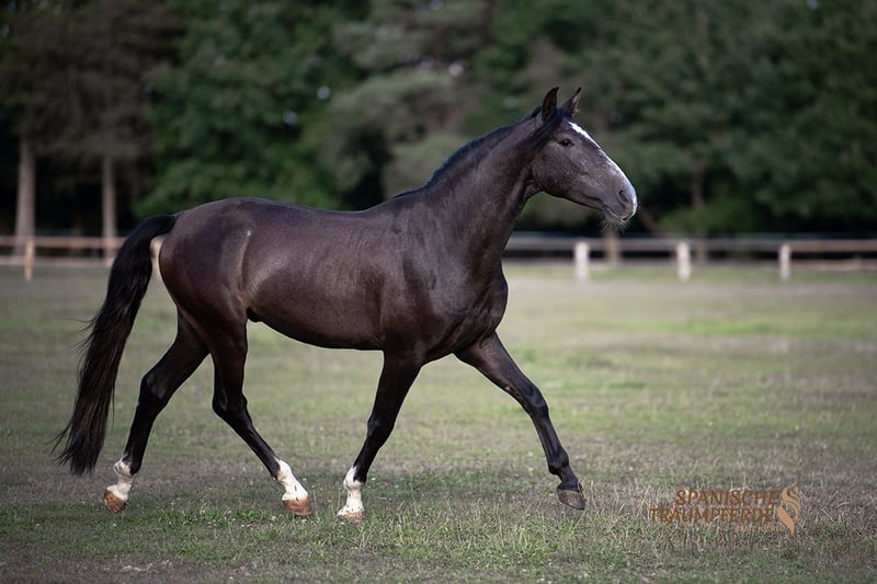 Der vierjährige PRE-Rappschimmel-Wallach ✨RASHFORD SH✨ ist ein ganz besonderes Pferd im handlichen Format von 156 cm. Er hat ein freundliches Wesen, ist ein aufmerksames, fleißiges Kerlchen mit viel Potential für seine weitere reiterliche Ausbildung. Der schöne Wallach überzeugt nicht nur durch seine außergewöhnliche Farbe, sondern auch durch sein besonderes Bewegungspotenzial, sowie seinen lieben und sehr verschmusten Charakter. Im täglichen Umgang ist RASHFORD SH sehr höflich und sehr fein. Unter dem Sattel macht der süße Kerl ein tolles Bild. Der Wallach ist angeritten, läuft solide in den Grundgangarten und ist dabei angenehm sitzbequem. Altersgerecht steht er natürlich ganz am Beginn seiner reiterlichen Grundausbildung. RASHFORD kommt direkt vom Züchter zu uns nach Traventhal. Er ist in der Herde im Sozialverband gesund groß geworden. Dieser wundervolle Wallach ist ein Traum für den ambitionierten Freizeitreiter mit Freude an der Ausbildung eines talentierten Pferdes. Ein Kennenlernen ist des Pferdes nach Terminabsprache nahezu jederzeit möglich. Für diesen Termin aus Vorstellen, Bodenarbeit und Probereiten nehmen wir zum Schutz unserer Pferde eine Pauschale von 50,-€. Videos findest du auf meiner Homepage: www.spanische-traumpferde.de Saubere Röntgenbilder liegen vor. Standort: 23795 Traventhal