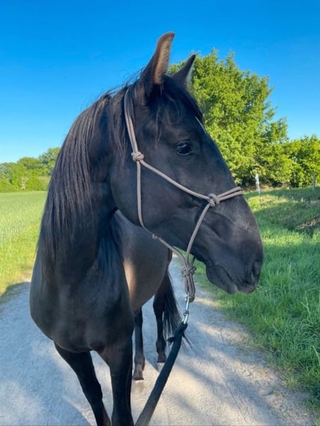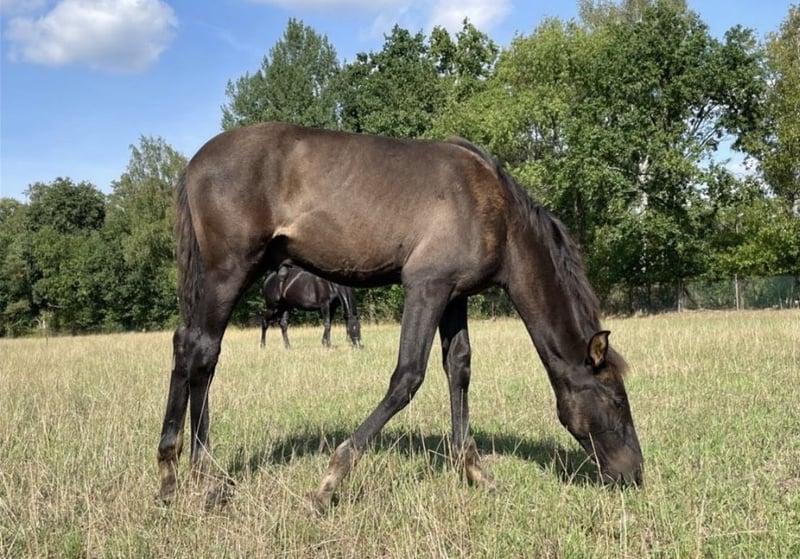Schwerensherzens biete ich meinen selbstgezogenen 4-jährigen PRE-Wallach zum Verkauf an. Cisco ist im Mai 2022 geboren und hat als Fohlen auf meinem Schoß geschlafen, dementsprechend ist er unglaublich menschenbezogen. Als Fohlen ist er mit seiner Mutter einfach mitgelaufen, und hat so „beiläufig“ Kontakt zum Putzen, Anhänger, Spazieren… etc. gehabt. Er wurde ausschließlich im Offenstall gehalten: das erste Lebensjahr hat er in einer gemischten Herde verbracht. Mit einem Jahr ging er in eine Hengstaufzuchtherde für 1,5 Jahre. Nun steht er seit einem Jahr in einer Wallachherde. Er war stets ein Mittelglied und hat sich unkompliziert in eine Herde eingefügt. Cisco ist super lieb und menschenbezogen, er ist immer der Erste, der ankommt, wenn man den Auslauf betritt. Er ist ausserdem unglaublich entspannt und gelassen. Natürlich bleibt er ein junges Pferd, er kann sich auch mal erschrecken, aber er ist von Grund auf entspannt und vertraut auf seinen Menschen. Er hat keinerlei schlechte Manieren wie Beißen, Steigen oder Bocken! Kurzum: er wird mal ein ganz tolles Verlasspferd sein, der mit einem durch dick und dünn geht! Leider habe ich längerfristig nicht die Zeit, ihm die Aufmerksamkeit zu geben, die er braucht und verdient. Daher muss ich für ihn, aus Liebe zu ihm, doch ein neues Zuhause suchen. Er hat schon einiges Kennengelernt: wir waren viel spazieren, Hunde, Katzen, Hühner, Schafe, Feldsprenger, Fahrradfahrer, Autos sind kein Problem. Auf dem Trail hat er sich auch von der besten Seite gezeigt. Aktuell ist er bereits in allen Gangarten anlongiert. Anhänger und Schmied sind kein Problem! Wichtig: er ist noch recht grün und braucht Zeit, bevor er eingeritten wird. So hat man aber als zukünftigen Besitzer die Chance, mit ihm auf diese besondere Art zusammenzuwachsen, die die Ausbildung des eigenen Pferdes mit sich bringt. Schätzungsweise wird er ca. 165cm groß. Farbe ist mutmaßlich smokey black (schwarz + Aufhellung - Vater Rappe, Mutter Falbe). ANCCE Papiere vorhanden Fragen werden gerne beantwortet!