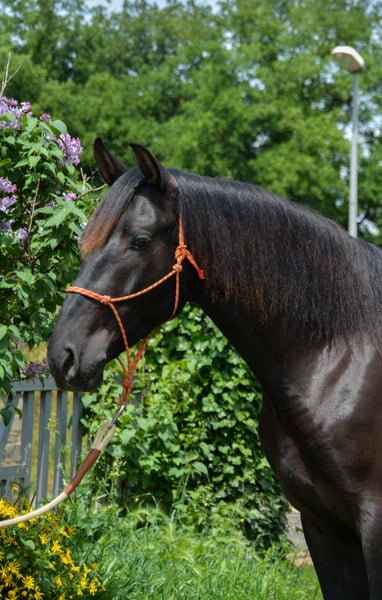 CORREFOC potro PRE negro de 3 años 165 altura recien entrado del campo con muy buenos movimientos y morfologia empezando su desbrave y empezandose a montar