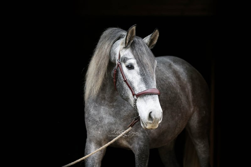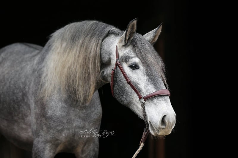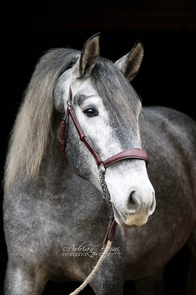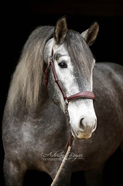 Ce magnifique hongre gris est un cheval exceptionnellement doux. SOMBRIO SH est très facile à vivre, absolument câlin et donne toujours le meilleur lors du travail, en fournissant 100 % d’efforts. Il possède trois allures de base très souples, qui permettent une selle aisée. Étant un cheval très obéissant, il est facile à retravailler, même s'il n'a pas encore beaucoup de expérience en raison de son jeune âge. Il ne demande pas de force au cavalier et s’efforce de réaliser tout au mieux. Dans notre élevage, il est travaillé 3 à 4 fois par semaine, il peut profiter de la pâture, aller à la longe, dans la carrière de dressage ou en paddock. Il a été monté avec beaucoup d’amour et de patience. SOMBRIO est un véritable exemple du cheval espagnol, non seulement par son apparence qui correspond à l’idéal, mais aussi par son tempérament, qui reflète la douceur de sa noble race. Il a grandi en troupeau. Sa vie jusqu’à présent a été insouciante et heureuse. Il n’a jamais vécu d’expérience négative, ce qui lui permet de faire pleinement confiance à l’humain. Il est à noter que ses pieds sont bien alignés et qu’il marche très bien pieds nus. Informations générales pour faire connaissance avec nos chevaux : Nous nous efforçons de familiariser nos chevaux avec la vie de cheval de manière confiante. Nous présentons volontiers les chevaux en longe et sous la selle. En cas d’intérêt sérieux, il est bien entendu possible d’essayer le cheval en selle et de travailler à pied. Une participation de 50 euros sera demandée pour la visite, afin de protéger nos chevaux à la vente contre le tourisme de l’essai, qui est devenu à la mode. Nous avons constaté que nos acheteurs apprécient que leur futur cheval n’ait pas été essayé par trop de mains. Nous vous remercions de votre compréhension. Vous pouvez également combiner votre recherche de cheval avec quelques jours de vacances. Nos appartements confortables situés directement sur l’élevage vous permettent de faire connaissance avec les chevaux 24 heures sur 24. Pour toute question ou pour plus d’informations, je reste à votre disposition. N’hésitez pas à me contacter pour en savoir plus sur ce gentil garçon.