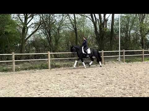 Dieser wunderschöne vierjährige schwarze PRE-Wallach (ca. 170 cm) ist ein echter Blickfang mit einem goldenen Charakter. Seit Oktober letzten Jahres wurde er unter dem Sattel ausgebildet und in den Niederlanden auf eine ruhige, traumafreie Weise eingeritten. Im Umgang ist er äußerst brav und gelassen: Er ist lieb beim Hufschmied und Tierarzt, lädt problemlos auf den Trailer und genießt sichtbar Aufmerksamkeit und Streicheleinheiten. Er arbeitet gerne für seinen Reiter und denkt mit. Unter dem Sattel zeigt er sich als zuverlässiges und bequemes Pferd. Er ist brav bei Ausritten und kennt den Straßenverkehr. Er verfügt über einen großzügigen Schritt und Trab sowie einen schönen bergauf galoppierenden Gang, bei dem er bereits jetzt zeigt, dass das Sammeln in Zukunft kein Problem sein wird. Mit seinem Erscheinungsbild und seinen Bewegungen ist er definitiv ein Pferd, das in der Dressur- oder MCI-Klasse glänzen kann. Gleichzeitig macht sein angenehmes Wesen ihn auch zu einem potenziellen Familienpferd. Er ist nicht sensibel oder nervös, bleibt aber natürlich ein junges Pferd. Daher sehen wir ihn am liebsten bei einem Reiter auf L/M-Niveau oder bei jemandem mit Erfahrung im Umgang mit jungen Pferden. Gute Röntgenbilder inklusive Hals- und Rückenaufnahmen.
