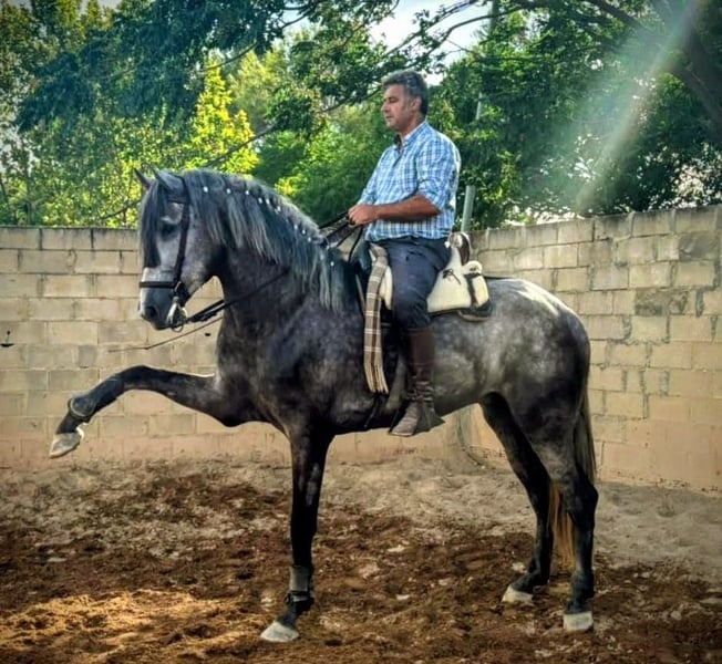 ✨Dieser wirklich wunderschöne PRE Wallach, möchte gern in sein FOR EVER HOME vermittelt werden 🏡 Ein beeindruckender & im modernen Typ stehender jünger Gentlemen, zeichnet sich durch sein sicheres Auftreten und sein vielversprechendes Potenzial aus. Sein Charakter ist bilderbuchmäßig mit viel Adel und das sanftmutige Temperament des spanischen Pferdes. Seine harmonische Oberlinie, sein edler Kopf und seine ausgeprägte und prickelnde Präsenz, machen ihn zu einem ganz besonderen Pferd. Der Schimmel besticht durch seine tolle Fellzeichnung, die ihn zu einem echten Blickfang macht. Trotz seines jungen Alters zeigt er bereits eine vielversprechende Basisausbildung und ist einfach zu reiten. Somit auch für etwas noch schwächere Reiter geeignet. Bislang ist er überwiegend im Gelände unterwegs und da ist er bombensicher. Seine edle Konstitution verleiht ihm eine elegante und zugleich robuste Erscheinung, ideal für Doma Vaquera, Freizeit oder Working. Er ist gut Basis geritten, beherrscht schon einige Seitengänge und Zircensiklektionen wie Spanischen Gruß. Auch ist er sehr gelehrig und arbeitet sehr gern mit. Dieser PRE Wallach ist ein echtes Schmuckstück für jeden Liebhaber spanischer Pferde, der Wert auf Qualität, Charakter und Ausstrahlung legt. Bei Interesse freuen wir uns auf Ihre Kontaktaufnahme ( bitte mit WhatsApp Nummer) , um weitere Details zu besprechen und eventuell auch einen Besichtigungstermin zu vereinbaren. Wir arrangieren auch gern den Transport für Euch 🚛✈️ Wir haben eine große Auswahl an verschiedenen Pferden vom Fohlen bis zum Gran Prix Pferd.
