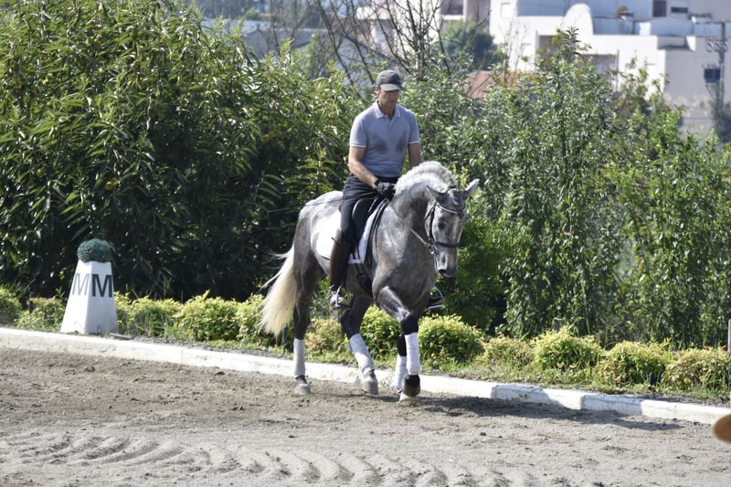 ARBOSO CSLR to 3-letni i 9-miesięczny ogier rasy Pura Raza Española (PRE), zarejestrowany w ANCCE, będący młodym kandydatem zarówno do sportu ujeżdżeniowego, jak i do pracy w equitacji. Wyróżnia się szlachetnym charakterem, ruchem oraz barokową konformacją. GARBOSO jest obecnie pod siodłem i rozpoczął podstawowe ruchy boczne, wykazując zdolności do równowagi, rytmu i zebrania. Jego mentalna koncentracja i chęć do nauki sprawiają, że trening jest przyjemny i postępujący. Łączy klasyczny hiszpański typ z potencjałem sportowym – cenny ogier dla jeźdźców, którzy chcą rozwijać utalentowanego młodego konia od samego początku, lub hodowców, którzy pragną wprowadzić jakość i temperament do swojego programu. Wiek: 3 lata i 9 miesięcy Rasa: P.R.E. – Pura Raza Española Płeć: Ogier Rejestracja: ANCCE Poziom szkolenia: Pod siodłem, rozpoczynający pracę boczną Charakter: Szlachetny, uważny, chętny do nauki Chody: W górę, elastyczne, z naturalną kadencją Zdrowie: Rentgeny i wolny od piroplazmozy