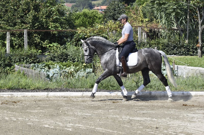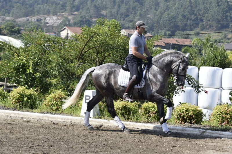 ARBOSO CSLR is a 3-year and 9-month-old Pura Raza Española (PRE) stallion, ANCCE-registered, and a Young prospect for both dressage sport and /or Working Equitation He stands out for his noble carácter, movement, and barroque conformation. GARBOSO is currently under saddle and has started basic lateral movements, showing aptitude for balance, rhythm, and collection. His mental focus and willingness make training enjoyable and progressive. He combines classical Spanish type with sport potential—a valuable stallion for riders aiming to develop a talented young horse from the start or breeders looking to introduce quality and temperament into their program. Age: 3 years and 9 months Breed: P.R.E. – Pura Raza Española Gender: Stallion Registration: ANCCE Training Level: Under saddle, starting lateral work Character: Noble, attentive, willing to learn Gaits: Uphill, elastic, with natural cadence Health: X-rays and Piro free