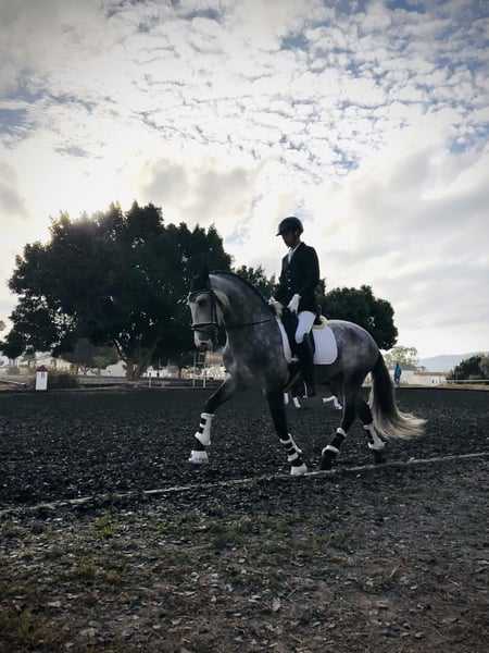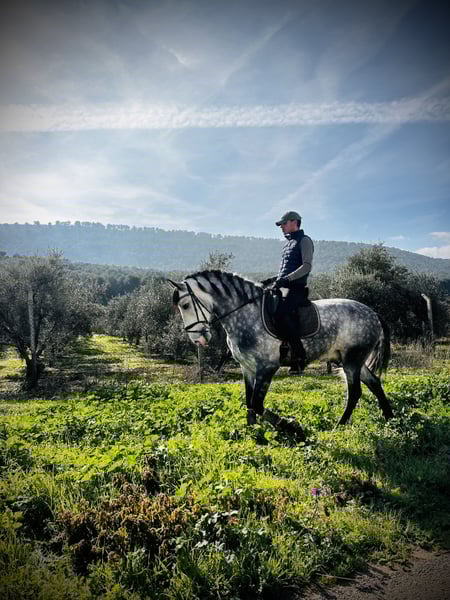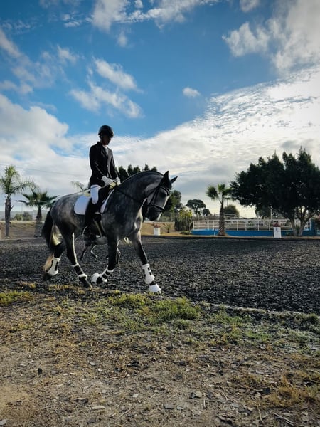 Caballo castrado de doma clásica, nacido en 2021 Presentamos un hermoso caballo castrado, nacido en 2021, de color tordo rodado. Con una alzada de 1,64 m, es un ejemplar ideal para jinetes que buscan un caballo bien formado y con potencial en la disciplina de doma clásica. Su carácter equilibrado y su entrenamiento en doma clásica hacen de él un compañero confiable y versátil para niveles intermedios y avanzados. Perfecto para seguir desarrollándose en la disciplina o para un jinete que valore un caballo bien domado y con buena disposición. Experiencia en competiciones en pruebas de caballos jóvenes con resultados óptimos superando notas por encima de 7,5