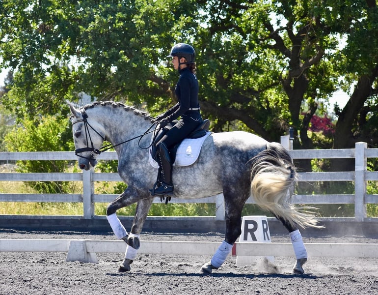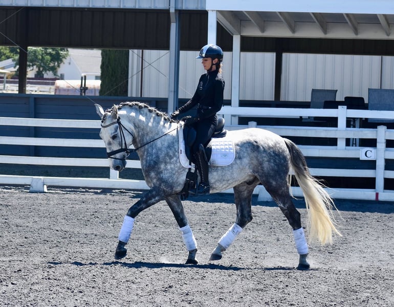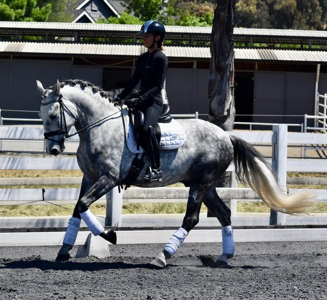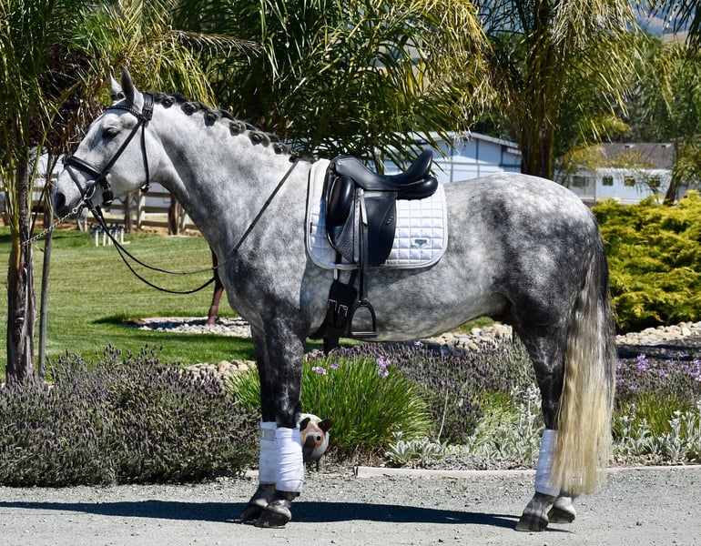 Spanish gelding seeking a sensitive, loving, and confident handler. Fully registered with ANCCE, approximately 16.1 hh, an exceptionally large horse with outstanding movement. He has been trained in dressage up to L/M level and competes in jumping at A level. He is a very refined horse who learns incredibly quickly, always eager to please, and understands clear communication. His person should be consistent and fair. Once he has gained your trust, he is a lot of fun and highly motivated. Typical of the Spanish type, he is very affectionate and the opposite of "dull." Due to his sensitivity, Nobu is also very suitable for classical dressage. He has already been introduced to some elements and has been regarded as very talented. If you are interested, I look forward to receiving a message with your phone number. I am happy to call back.