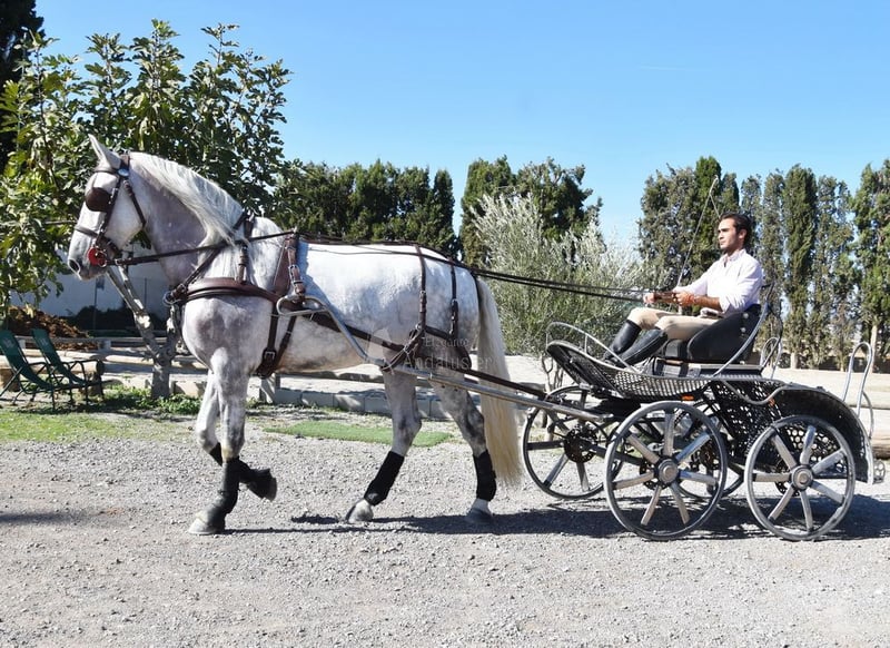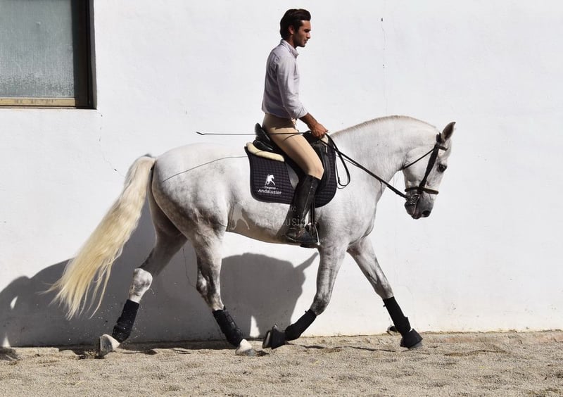 hübscher großer PRE Schimmelwallach, gut geritten und gefahren