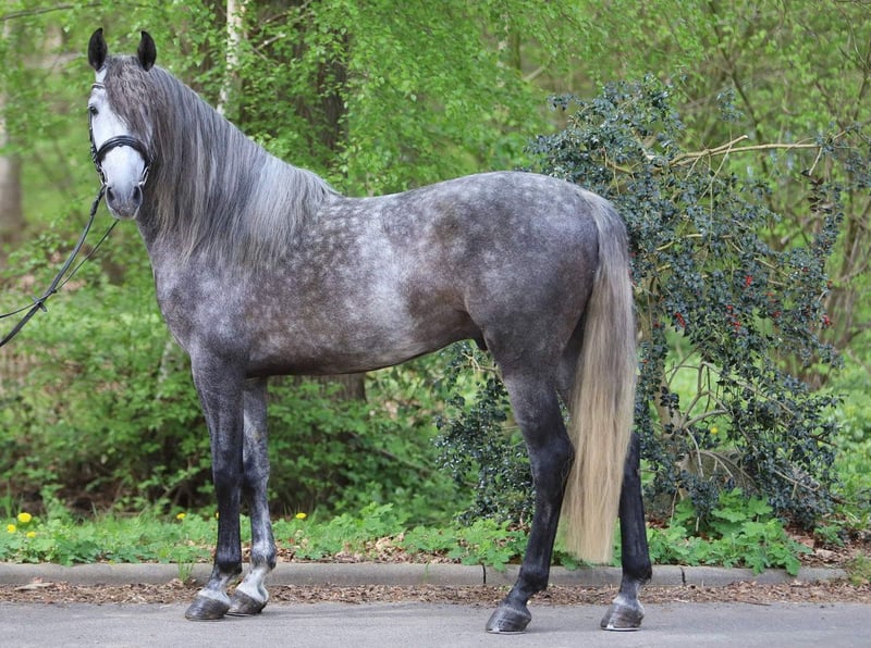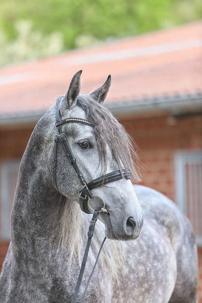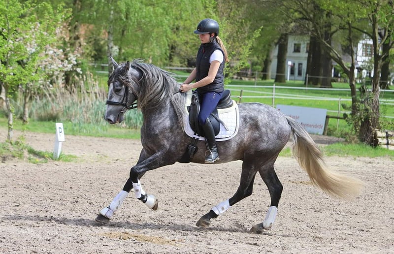 Wunderschöner PRE Wallach freut sich auf seinen neuen Menschen… Er ist mit 5 Jahren im optimalen Alter und wurde spät und schonend angeritten. Sehr gut erzogen und am Boden gearbeitet, sowohl im natural Horsemanship als auch in ersten Ansätzen in der klassischen Handarbeit und in der Freiarbeit. Er lebt auf der Koppel in der Herde, hat einen hohen Rang und geht sehr fair mit den anderen um. Vergangenes Jahr sind wir mit ihm auch schon einen Dorfumzug mitgeritten, was er ganz toll gemacht hat. Ansonsten wird er auf dem Reitplatz gearbeitet, geht spazieren und ab und zu sind wir mit ihm im Hänger unterwegs zum auswärts reiten. Der Bub alle möglichen Seitengänge und Biegungen, hat eine angenehme Arbeitsfreude und gibt sich Mühe. Er hat wunderschöne Gänge, ist sehr korrekt gebaut und hat eine gute Abstammung. Größe ca. 1,65m. Läuft auf Wassertrense und meist mit Dressur- oder Barocksattel. Kennt Schafe, Ponys, Hunde, Traktoren, Autos etc. Er ist ein absolutes Traumpferd mit dem man viel Freude haben kann. Die Hufe werden regelmäßig gepflegt, 1x im Jahr werden unsere Pferde dem Physiotherapeuten und Zahnarzt vorgestellt. Er ist Piroplasmose Träger, wahrscheinlich hat er sich das durch einen Zeckenbiss in dem riesigen Naturschutzgebiet eingefangen, wo er geboren wurde und aufgewachsen ist. Er wurde nie behandelt, es handelt sich um einen Zufallsbefund der von mir natürlich mit angegeben wird. Er ist ein sehr robustes Pferd und einfach in der Haltung. Er kennt und akzeptiert den Stromzaun und war zur Gewöhnung auch schon mal in der Box. Weitere Infos und Videos gerne auf Anfrage.