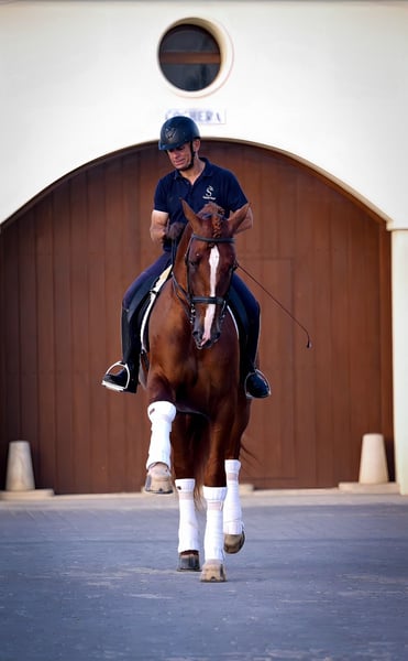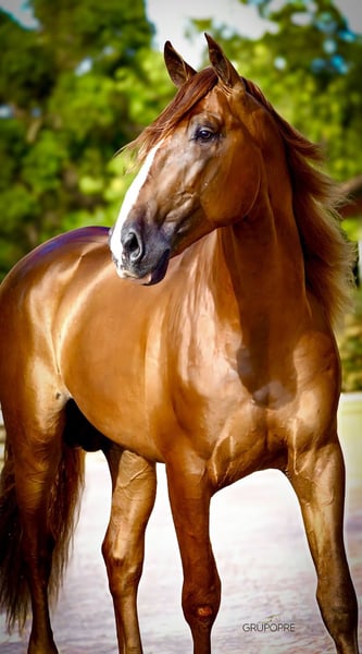 Destaca por su morfología espectacular, gran expresividad y movimientos amplios y potentes, mostrando desde joven unas cualidades muy interesantes tanto para la doma como para la reproducción. Caballo con una imagen sólida, equilibrada y muy llamativa, ideal para quien busca un semental joven con proyección y calidad contrastada.