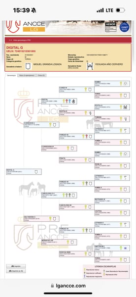 Mówią, że nie można jeździć na papierach... ale można je zobaczyć na tym szlachetnym koniu marzeń. Młody wałach (już wykastrowany na miejscu) DIGITAL G zdradza swoje szlachetne pochodzenie dzięki doskonałej budowie, szlachetnej głowie i ekspresyjnym chodom. Czysta Granda (Gestüt Granda Losada) wyhodowała młodego PRE z wielkimi nazwiskami w rodowodzie! Ta stadnina oznacza elegancję, jakość ruchu i funkcjonalność. Młody wałach został już trochę zajeżdżony i nadal jest w treningu. Jego charakter jest inteligentny, otwarty i chętny do nauki. Z pewnością urośnie jeszcze o kilka centymetrów, tak że spodziewana ostateczna wysokość wyniesie około 1,65 m. Pełne dokumenty ANCCE. Lokalizacja Hiszpania.