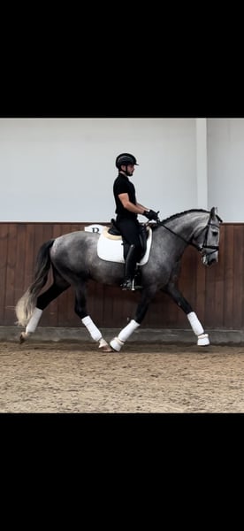 Auf Papieren kann man nicht reiten, sagt man… aber die Papiere kann man diesem edlen Traumpferd ansehen. Der junge Wallach (bereits vor Ort kastriert worden) DIGITAL G verrät seine edle Herkunft durch ein perfektes Gebäude, einen edlen Kopf und ausdrucksstarke Gänge. Ein reiner Granda (Gestüt Granda Losada) gezogener junger PRE mit ganz großen Namen im Stammbaum! Dieses Gestüt steht für Eleganz, Bewegungsqualität und Funktionalität. Der junge Wallach ist professionell auf Wassertrense in den GGA. angeritten und befindet sich weiterhin im Training. Charakterlich zeigt er sich intelligent, aufgeschlossen und lernwillig. Er geht auch bereits gut alleine und in der Gruppe ins Gelände. Er wird sicherlich noch ein paar Zentimeter wachsen, sodass das erwartete Endstockmass bei ca. 1,65m liegt. Volles ANCCE-Papier. Standort Dänemark.