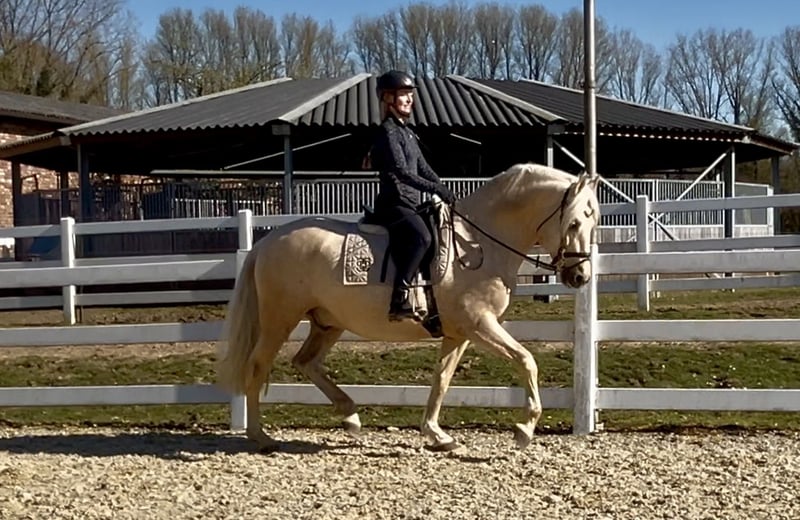Palomito to koń urodzony w 2020 roku, z pełną dokumentacją od ANCCE – PRE. Jest bezpiecznie wytrenowany i dobrze porusza się we wszystkich trzech podstawowych chodach, zaczyna także pracę nad półstrugami. Zna lonżę, mycie, solarium, wypas, jazdę w terenie, halę oraz plac zewnętrzny. Na komendę potrafi również perfekcyjnie się położyć i wstać. Warto go obejrzeć.