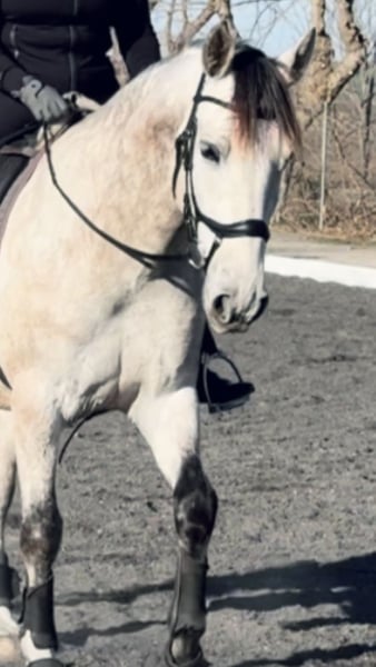 Marchena, PRE-Wallach, geboren 2020 und ap. 164 cm. Marchena ist ein sehr vielversprechendes Pferd für den Reiter, der alle Jungpferdeprüfungen absolvieren und sich bis zur höchsten Stufe hocharbeiten möchte. Marchena hat sehr gute Bewegungen mit einer natürlichen Balance und Leichtigkeit, sowohl in der Versammlung als auch in der Schrittverlängerung. Marchena ist in einem sehr guten Ausbildungsstand für sein Alter und macht sehr gute Seitengänge und gut ausbalancierten Gegengalopp. Er ist bereit, an den FEI-Prüfungen für 5-Jährige teilzunehmen. Marchena hat eine sehr gute Rittigkeit und macht so viel Spaß zu reiten, dass man während der gesamten Reitstunde lächeln muss. Er ist angenehm zu sitzen, hat ein weiches Maul, eine positive Einstellung und die perfekte Menge an Energie, Marchena ist auch ein Teddybär im Umgang und liebt es, mit vielen Küssen zu schmusen. Er ist einfach in allem, was man mit ihm macht und ist es gewohnt, mit einer weichen Hand umsorgt zu werden. Er ist es gewöhnt, in den Paddock zu gehen und lebt derzeit draußen in einem Paddock mit Schutz 24/7. Marchena hat saubere Röntgenbilder und ist Piro negativ. Er befindet sich in Südspanien und wir helfen bei allen Schritten des Kaufprozesses. Lesen Sie mehr über uns unter www.cthorsesales.com Kontakt: info@cthorsesales.com