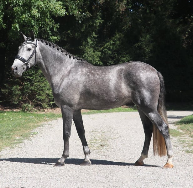 Zum Verkauf steht ein braver, sechsjähriger PRE-Wallach mit Papieren, ca. 1,67 m groß. Bolero ist gelassen und brav, aber auch sensibel. Daher suche ich jemanden, der ihn auf freundliche und respektvolle Weise ausbildet. Er ist fein im Umgang und gut erzogen an der Longe, aber Konsequenz ist wichtig. Zudem kennt er Bodenarbeit, Freiheitsdressur und Springen macht ihm ebenfalls großen Spaß. Ich halte ihn für ein tolles Pferd für beispielsweise Working Equitation, aber auch das Crossreiten würde er mit Sicherheit sehr genießen. Ein vielseitiges Pferd also! Seit letztem Sommer wird Bolero mehr unter dem Sattel geritten. Vorher stand er eine Zeit lang still, weil ich schwanger war, und wurde damals nur vom Boden aus gearbeitet. Unter dem Reiter reagiert er sehr gut auf das Sitzen, lernt schnell. Er ist jedoch sensibel und braucht klare Anweisungen, weshalb ich ihn nicht an Anfänger abgebe. Derzeit steht Bolero 24/7 draußen mit einem Unterstand, was ihm sehr gut gefällt. Er braucht einen Stall, in dem er mindestens tagsüber viel draußen sein kann. Er ist brav beim Hufschmied (hat nie Eisen getragen), wurde regelmäßig geimpft etc. Ich suche unbedingt ein liebevolles Zuhause für ihn. Ich wünsche ihm einen Besitzer, der ihm viel Abwechslung bieten kann und freundlich im Umgang mit Pferden ist. Der Preis ist bei einem guten Zuhause verhandelbar.