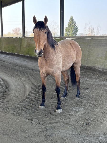 Anno 2020 Altezza garrese 165 cm Castrone Manto isabella Folta criniera e coda nera Il cavallo non è ferrato ma è pareggiato. Capace a salire in trailer. Attualmente non adatto alle passeggiate. Controllo dentista e trattamento a fine dicembre. È arrivato dalla Spagna a fine anno in camion. Sale e viaggia sul trailer. Abituato a lettiera in paglia. Doma base. Inizio cessioni e spalle in dentro. Cavallo equilibrato ma non adatto a cavalieri inesperti perché giovane. Abituato a box e paddok. Ha già fatto due uscite in luoghi nuovi. Il cavallo è bravo, necessita di un cavaliere che gli trasmetta fiducia. Nessuna fretta di vendita. Cessione solo in buone mani. Vendo perché necessito di cavallo con esperienza. Info 3471322003