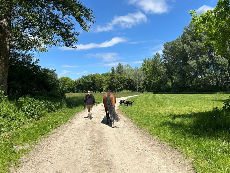 Cavallo PRE castrone a livello L – docile, motivato e con un’ottima presenza Questo espressivo cavallo PRE con certificato ANCCE completo si distingue per il suo aspetto armonioso, la sua finezza nel movimento e il suo atteggiamento sempre piacevole. Con un’altezza al garrese di circa 1,65 m, si presenta nella misura ideale per il dressage. Il cavallo si trova a un livello solido di allenamento L e ha già partecipato con successo a competizioni, dimostrandosi sempre affidabile e concentrato. Sotto la sella lavora con molta motivazione, rilassatezza e voglia di imparare, rendendolo un vero partner per l’allenamento quotidiano. Le sue tre andature fondamentali di buona qualità, in particolare il trotto energico, lo rendono interessante sia per i cavalieri ambiziosi che per gli appassionati di tempo libero esigenti, che apprezzano la maneggevolezza e il carattere. Questo PRE si mostra sempre amichevole, socievole e affidabile nel rapporto con le persone. Grazie alla sua attitudine positiva e alla volontà di lavorare, dà quotidianamente gioia al suo cavaliere e offre le migliori basi per un ulteriore sviluppo. Dati essenziali: - Razza: Pura Raza Española (PRE) con certificato ANCCE - Sesso: castrone - Altezza al garrese: circa 1,65 m - Livello di allenamento: dressage livello L - Esperienza in gara: sì - Carattere: motivato, desideroso di imparare, affidabile, socievole