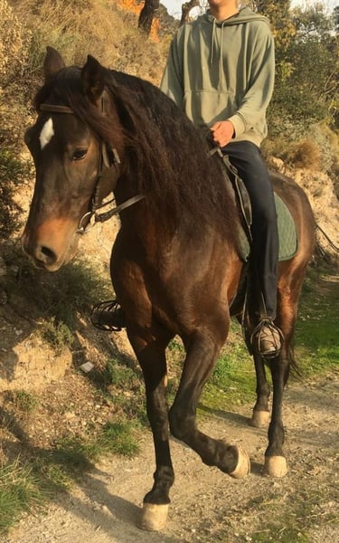 Jaleo is een prachtige PRE-ruin uit 2020. Hij komt uit een uitstekende fokkerij (vaderlijn CAMPANA), en zijn vader Nabijero XI en meerdere broers en zussen nemen deel aan evenementen en paardenshows door heel Spanje. Zijn moeder, Jalea XLIX, komt uit de gerenommeerde Bohorquez-lijnen. Hij is slechts uitgesloten vanwege zijn kleur (zijn fokkers willen alleen schimmels). Met zijn elegante uitstraling, prachtige lange manen en zijn evenwichtige karakter is hij een echte blikvanger. Hij heeft een ideale hoogte van ongeveer 166 cm en is uitstekend geschikt voor de dressuur. Hoewel hij nog niet lang onder het zadel loopt, toont hij nu al indrukwekkende aanleg. Naast zijn expressieve gangen is hij ook zeer gevoelig aan de hulpen (bereden met een eenvoudige watertrense) en heeft hij een fijn "Go". Hij overtuigt door zijn goede bewegingskwaliteit, leergierigheid en vriendelijke aard. Ideaal voor ambitieuze ruiters die op zoek zijn naar een betrouwbaar en talentvol paard. Natuurlijk is hij, gezien zijn leeftijd, nog niet volledig opgeleid, maar alle basisvaardigheden zijn aanwezig om van hem een echt toppaard te maken. Jaleo woont bij mij, aan de voet van de Sierra Nevada (Granada), op meer dan 1000 meter hoogte in een open stal. Hij is daardoor zeer robuust, zowel tegen hitte als kou. Hij is ook gewend om af en toe in de box te staan. Ik doe hem momenteel voor een prijs ver onder de marktwaarde weg, omdat wij binnenkort gaan verhuizen. Bij interesse of voor meer informatie sta ik u graag te woord.