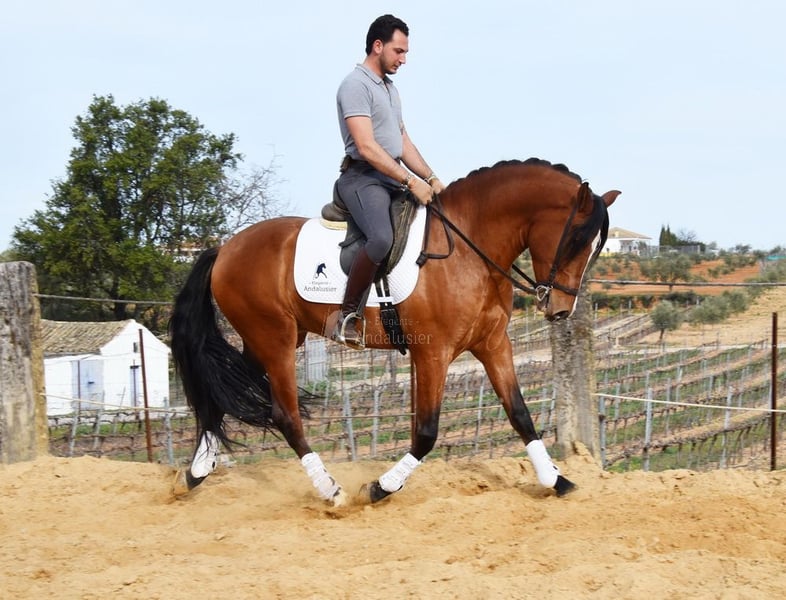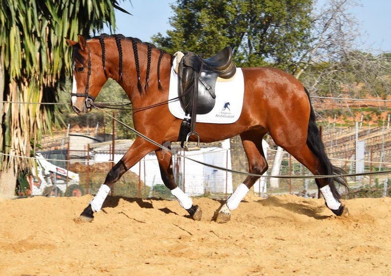 miły charakter, ciekawski, nieco ujeżdżony w podstawowych chodach, wysoki, dobry ruch i rodowód, rodowód: Escalera, Yeguada Militar, dziadek Obcecado jest kwalifikowany www.elegante-andalusier.com