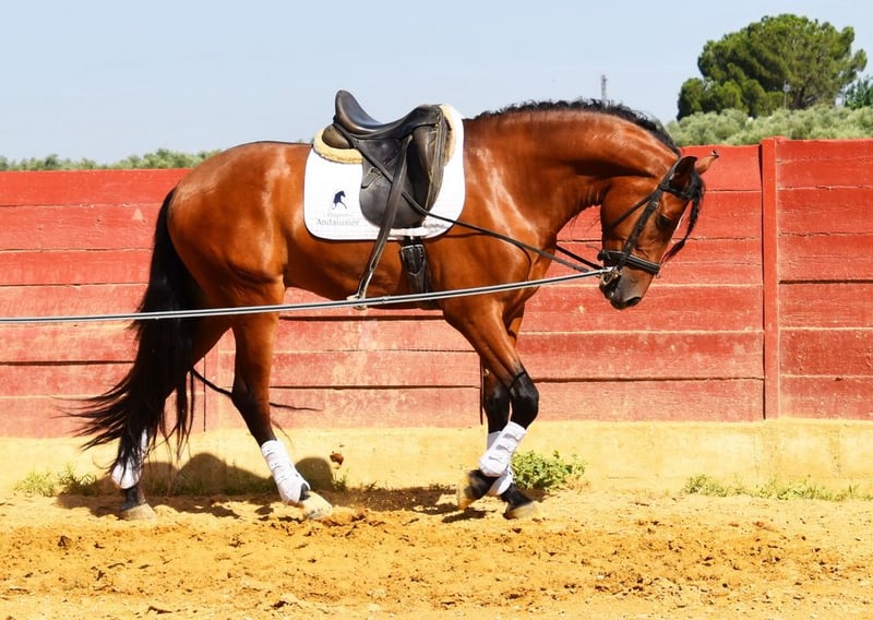 lieber Charakter, neugierig, in den Grundgangarten geritten, groß, gute Bewegungen und Abstammung, Abstammung: Escalera, Yeguada Militar, Opa Obcecado ist qualifiziert www.elegante-andalusier.com