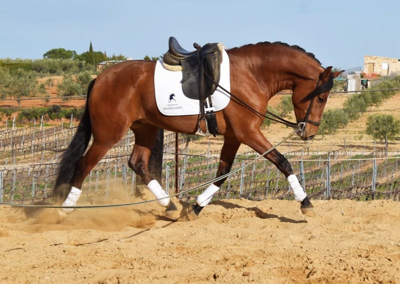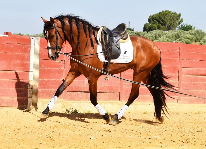 Carattere amabile, curioso, montato ai passo, alto, buone andature e genealogia di qualità. Genealogia: Escalera, Yeguada Militar. Il nonno Obcecado è qualificato. www.elegante-andalusier.com