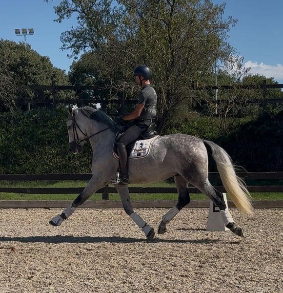 Incredible horse with capacity to go at higher levels easily, he is working his level age correctly and has experience competing, gold medallist and always podium, he is son of Fer Bonachon x Fer Bago, very top bloodlines. Has fully clean xrays vetcheck done recently, this horse is suitable for amateurs and top riders that want to develop for advance level, will be easily a GP horse in the future, his future is bright ⭐️