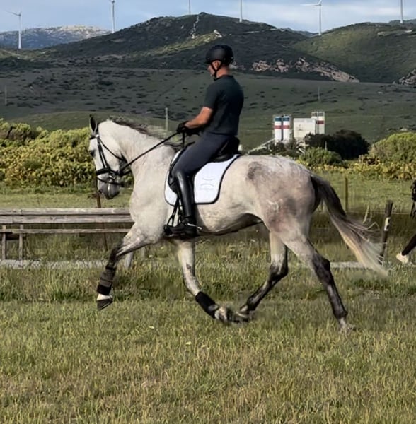 Castrated PRE horse, 5 years old. 1.75m in height. Sporty physique. Three very good gaits. Ideal for dressage. Used to going out to the countryside. With a lot of willingness to work and easy to handle. No vices and very good character.