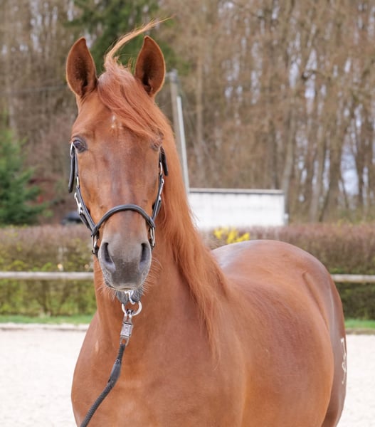 Name: Duque JR III Breed: P.R.E. (Purebred Spanish Horse) Gender: Gelding Date of Birth: April 5, 2019 Age: 7 years Height: 1.60 m (approximately 16.1 hh) Color: Chestnut Pedigree: with pedigree documentation Temperament: personable, eager to learn, reliable, curious, intelligent, brave Training/Suitability: ridden, dressage, leisure riding, baroque riding, working equitation Trail Experience: confident, fearless, experienced both alone and in a group Health: dewormed, vaccinated, barefoot, eczema-free, teeth checked, osteopathically treated Stabling: box stall, paddock Special Features: good basic gaits, very comfortable rider seat, farrier and loading confident, herd-compatible Please note that the above characteristics are based on our personal assessment and do not constitute guaranteed features. Price: €8,900 (gross price) Have we piqued your interest? To give you a better impression of Duque, we are happy to send you a riding video. Of course, we are available for a detailed description of the horse, personal consultation, and to answer all your questions by phone. Feel free to contact us anytime via WhatsApp or call us at: +49 151 19487595 Our phone hours are daily from 7:00 AM to 1:30 PM and again from 8:00 PM. We look forward to hearing from you! A clinical or radiological pre-purchase examination can be performed by your veterinarian of choice. Duque can be safely and comfortably delivered to his new home. We take care of all necessary preparations and transportation so that your new horse arrives stress-free, well cared for, insured, and in good health. Currently, we offer a carefully selected range of horses for sale. With us, you are sure to find your dream horse. Visit us also on our website: www.marvinsroyalhorses.de. Dear customers, we are happy to introduce you to our horses and offer grooming, tacking, lunging, ground work, and trial riding in the riding hall, on the arena, or in the field to get to know your new family member better. The fee is €40 per horse, with each additional horse €30, and will be refunded upon purchase. Our address: Ferdinand Grube 50 53577 Neustadt-Wied Google Maps: marvinsroyalhorses