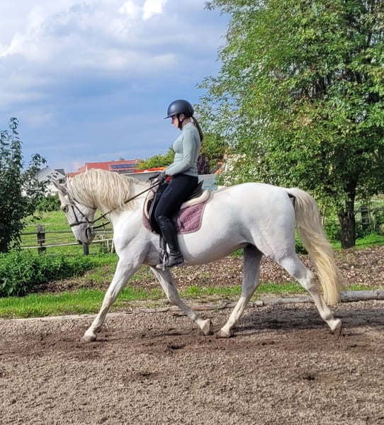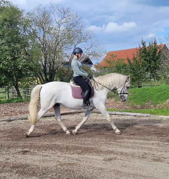 SANTOS is a beautiful, very elegant P.R.E. gray gelding of absolute top class. His God-given calmness and serenity allow even a somewhat insecure rider to quickly gain trust in this magnificent fellow. SANTOS forgives riding mistakes and responds when he senses that his rider is becoming unsure. SANTOS is a horse that literally looks out for his rider. He is very easy to ride and comfortable to sit on. He has three beautiful basic gaits. He is very people-oriented and loves to be pampered. He particularly enjoys working with children and young people. We have not been able to discover anything that could significantly disturb this magnificent fellow's calmness. Whether in the arena, all-weather arena, or on the trail, SANTOS moves forward well, is not lazy, but also not too fast. SANTOS is a horse that adapts to the demands of his rider, who adjusts to his rider. SANTOS embodies the ideal family horse and is also suitable for somewhat insecure riders. Not only under saddle but also during groundwork and in everyday handling, SANTOS provides security with his good-natured temperament and shows his great trust in humans. We can also very well imagine SANTOS as a therapy horse or as a teacher in a riding school. A horse that does not present its person with new challenges every day. For more information about our horses and our work, please contact 0171/5269002 Hubert Seitle and 0151/12775701 Uta Großmann. General information about our horses and our work can also be found at www.ps-seitle.de THERAPY HORSES Horse Sports Seitle in DONAUMOOS