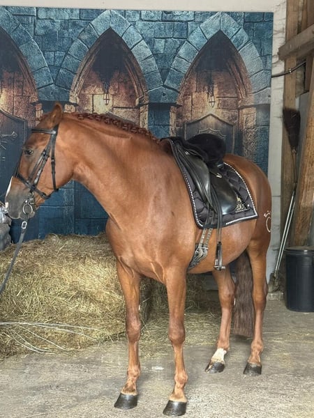 Dieser 2019 geborene Pura Raza Española Wallach in seltener Fuchsfarbe überzeugt nicht nur mit seinem ausdrucksstarken Erscheinungsbild, sondern auch mit seinem ehrlichen Charakter und seiner Vielseitigkeit unter dem Sattel. Mit einem Stockmaß von ca. 161 cm steht er kompakt und korrekt gebaut im typischen Hengsttyp, dabei stets freundlich, ausgeglichen und menschenbezogen. Er besitzt volle ANCCE-Papiere und bringt nicht nur optisch, sondern auch reiterlich einiges mit. Er ist brav im Umgang, kennt sowohl Boxen- als auch Herdenhaltung sowie regelmäßigen Weidegang. Beim Tierarzt und Hufschmied zeigt er sich stets unkompliziert. Impfungen und Entwurmungen wurden regelmäßig durchgeführt. Unter dem Sattel präsentiert er sich leicht zu reiten, steht gut am Bein und zeigt sich stets lernwillig und aufmerksam. Seine solide Grundausbildung umfasst nicht nur die klassischen Seitengänge, sondern auch zirzensische Lektionen wie das Kompliment, den Spanischen Schritt und das Hinlegen. Auch im Gelände zeigt er sich zuverlässig. Er ist vielseitig einsetzbar und eignet sich besonders für ambitionierte Reiter, die ein gut ausgebildetes, motiviertes und ausdrucksstarkes Pferd mit viel Potenzial für Working Equitation und Freizeit suchen.