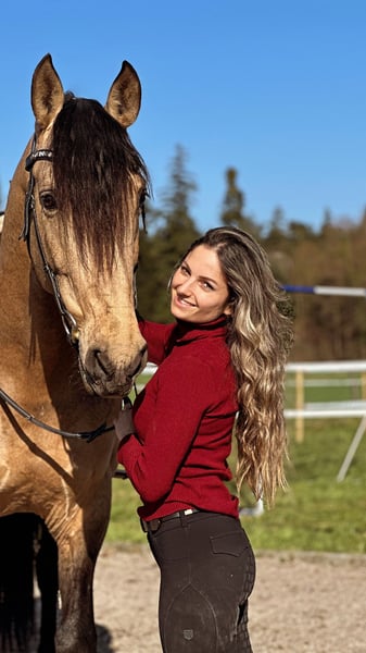A true dream horse seeking its perfect rider: Spirit is a 7-year-old PRE gelding with a height of 16.1 hh and a special buckskin coat. He combines beauty, expression, and character in perfect harmony. Spirit is licensed and impresses not only with his appearance but also with his noble temperament: - Licensed and from excellent lineage by Paco Martí - Gentle and reliable in the arena, whether alone or in a group. Calm and steady-minded. - Always motivated, eager to learn, and very people-oriented - Sensitive, refined to ride, and quick to learn – ideal for classical riding and fine dressage work Spirit has everything one could wish for in a modern PRE: charisma, rideability, reliability, and a heart of gold. Clear X-ray results available. Many videos of him can be found on our Instagram channel preschweiz.