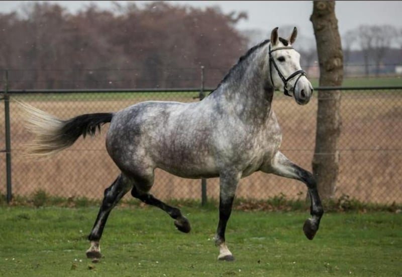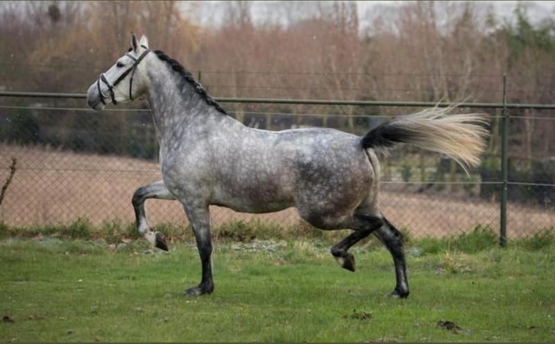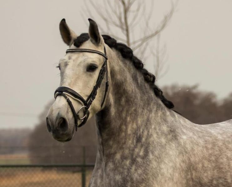 Gatsby, born May 2017, is a purebred PRE gelding. He stands approximately 1.64 meters (16.1 hh) tall and is a gray (white) horse. He is playful, affectionate, and very people-oriented. He came to me at the age of 3.5 years. Initially, he was worked from the ground and we went on many walks. After gentle riding training began at 4.5 years old, Gatsby is currently being exercised recreationally and further educated. This includes riding on the arena and in the field, as well as fascia work and groundwork. He is farrier- and loading-friendly, knows small children, dogs, tractors, and traffic. Gatsby is healthy, eczema-free, vaccinated, and dewormed. Gatsby requires clear, friendly guidance and is only suitable for an experienced horse person. He is gentle and polite in handling, eager to please, and wants to do everything right. However, he is also sensitive, needing patience, consistency, and a gentle hand. If these criteria are met, Gatsby is a real pleasure to ride; he is motivated and eager to learn. He feels most comfortable in a small herd with his own paddock box for the night. My hope is to find Gatsby’s soulmate and to give him a forever home. Priority goes to placement over price. Videos and further information gladly available upon request. No sales to dealers or riding schools.