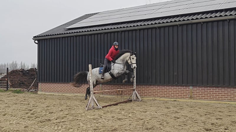 Te koop aangeboden: brave 6 jarige PRE ruin met carta, ca. 1.67m groot. Als veulen naar Nederland gekomen en altijd in de hand geweest. Bolero is nuchter en braaf, maar wel gevoelig. Ik zoek daarom iemand die op een vriendelijke en respectvolle manier traint. Bolero is netjes opgevoed aan de hand, maar wilt wel graag in je ruimte komen, daarom moet je wel consequent zijn. Daarnaast kent hij grondwerk, vrijheidsdressuur en ook springen vindt hij erg leuk. Ik verwacht dat hij een hartstikke leuk paard is voor bijvoorbeeld working equitation, maar ook een keer een cross rijden zal hij super leuk vinden. Een lekker veelzijdig paard dus! Sinds een paar maanden wordt Bolero meer doorgereden. Voor die tijd hij een tijdje stil gestaan vanwege mijn zwangerschap en is toen alleen op de grond gewerkt. Onder het zadel reageert hij goed op je zit en hij leert heel snel. Hij is wel gevoelig en heeft wel duidelijkheid nodig, daarom verkoop ik hem niet aan beginners. Momenteel staat Bolero 24/7 buiten met schuilstal en daar doet hij het heel goed op. Hij is braaf bij het bekappen (nooit op ijzers gestaan), heeft entingen etc. gehad. In 2024 is hij volledig op de foto geweest. Ik zoek absoluut een gouden 5✨ huis voor hem. Ik gun hem een baasje die hem lekker veel afwisseling kan bieden, en iemand die op een vriendelijke manier omgaat met paarden. Bij een goed thuis is prijs bespreekbaar. Heb je nog vragen of klinkt dit nou helemaal als hét paard waar je naar op zoek bent? Neem dan gerust contact op!