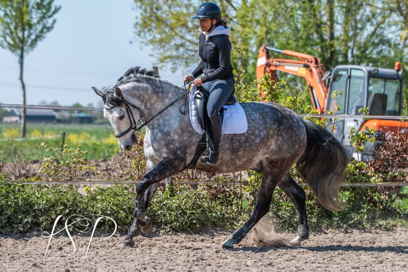 For sale: 6-year-old PRE gelding with a passport, approximately 1.67 meters tall. He arrived in the Netherlands as a foal and has always been handled in hand. Bolero is a calm and well-behaved horse, but also sensitive. Therefore, I am looking for someone who trains him in a friendly and respectful manner. He is nicely mannersed on the ground, but consistency is key. He is familiar with groundwork, liberty dressage, and also enjoys jumping — he appreciates variety in his training. Under saddle, Bolero is obedient and willing to work. He is sensitive and needs clear communication, so he is not suitable for beginners. Currently, Bolero is kept outside 24/7 with a shelter, which suits him very well. He needs a stable where he can spend at least part of the day outside. He is easy to trim and has never been shod. He has been vaccinated. In 2024, Bolero underwent a full veterinary check, including legs, neck, and back. I am looking for a loving, five-star home for Bolero with an owner who can offer him plenty of variety and who interacts with horses in a gentle and respectful way.