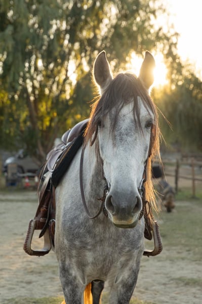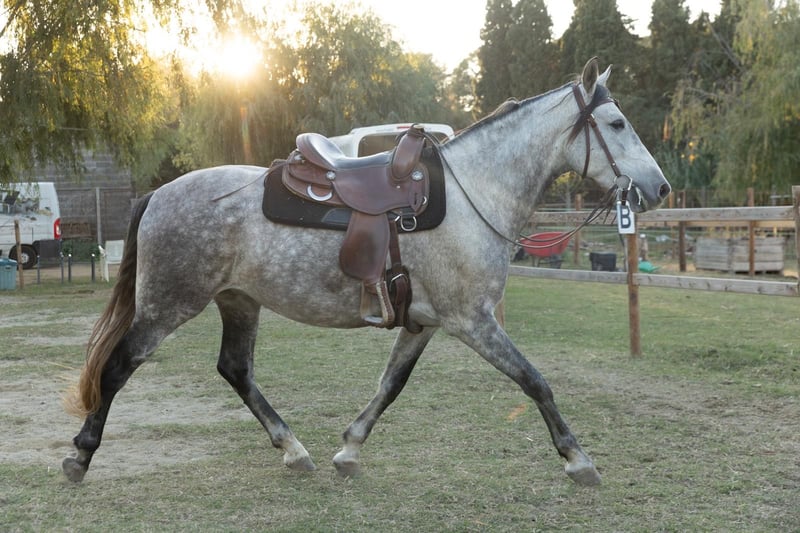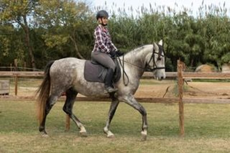 Zeus tiene siete años y fue montado de manera suave y tardía. Está muy bien educado y ha sido trabajado en el suelo, tanto en natural horsemanship como en los primeros enfoques de doma clásica y en trabajo en libertad. Zeus vive en paddock con la manada, tiene un rango alto y se lleva muy bien y de manera justa con los demás. Hace un año, ya participó en un desfile por el pueblo, lo hizo de manera excelente. Por lo demás, trabaja en la pista de doma, pasea y, de vez en cuando, viajamos con él en remolque para montar en otras instalaciones. Es un caballo muy cercano a las personas, noble y con carácter, que requiere ser visto. No es un caballo típico para todos ni un caballo infantil clásico. Ya han montado niños en él, lo cual tanto el caballo como los niños disfrutaron mucho, pero necesita un jinete seguro y sensible como su principal referente. Por lo tanto, no es un caballo para principiantes. También puede ir al campo y lo hace bastante bien, aunque todavía tiene algo de inseguridad en algunos momentos y necesita rutina y un jinete que le transmita confianza. Creemos que tiene grandes posibilidades de convertirse en un fiable y excelente caballo de campo. El caballo realiza todo tipo de movimientos laterales y flexiones, tiene un buen entusiasmo por el trabajo y se esfuerza mucho. Tiene movimientos preciosos, una estructura muy correcta y una buena línea de sangre. Mide aproximadamente 1,62 m. Trabaja con bocado de agua y normalmente con silla de doma o de barroco. Conoce ovejas, ponis, perros, tractores, coches, etc. Es un caballo absolutamente soñando, con el que se puede disfrutar mucho. Sus cascos se mantienen de forma regular, y una vez al año, nuestros caballos son revisados por fisioterapeuta y dentista, con dientes recién arreglados y en perfectas condiciones. Es portador de piroplasmosis, probablemente adquirida por una mordedura de garrapata en la gran reserva natural donde nació y creció. Nunca ha sido tratado, ya que se trata de un hallazgo casual que, por supuesto, informo. Podemos explicar más detalles en una conversación personal. Es un caballo muy resistente y sencillo de mantener. Conoce y acepta la cerca eléctrica y también ha estado en box para acostumbrarse. Podemos entregarlo directamente en su nuevo hogar. Se puede adquirir un sillín adecuado a un precio justo. Tiene un sillín barroco y uno de doma. No se vende en estabulación pura; es imprescindible que tenga acceso a un grupo (o al menos a otro caballo compatible), así como la posibilidad diaria de moverse libremente y recibir buenas manos. Para más información y vídeos, no duden en solicitarlo.