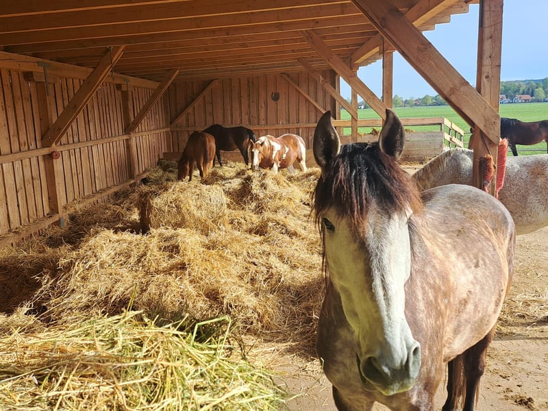 I am selling my extremely handsome PRE gelding Garabato Don, call name: Scirocco. Scirocco has specific requirements for his living situation, which I unfortunately cannot provide. He absolutely needs: - A paddock with 24-hour hay - A stable, dry shelter (not just a pasture tent) - No straw (not even as bedding) - A consistent, social group The 8-year-old gelding is being gently trained according to the principles of classical riding and always shows a willingness to learn. He goes out alone and in a group, is always easy to handle, but generally needs a confident rider. He is currently ridden bitless, which he clearly prefers over being ridden with a bit. However, he is also familiar with a bit. His teeth are regularly checked. He knows classical groundwork as well as small circus tricks and free work, which he particularly enjoys. He is barefoot, but rather sensitive. On rocky ground, he needs at least hoof boots. He has also had shoes in the past. He has a front limb deformity (narrow toes), but it does not affect his movement. If desired, accessories can also be purchased (Signum saddle, Signum riding pad, as well as bridles and a side pull). Scirocco will only be placed in a paddock situation with someone who genuinely takes the time to engage this wonderful horse on various levels. If you have any questions, please feel free to reach out! Meet and trial rides can be arranged by appointment.