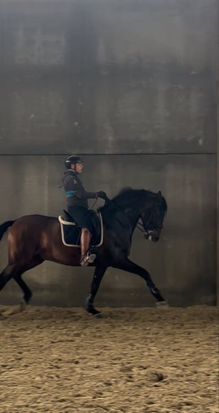Azor MP PRE gelding with ANCCE documents Born in 2018 (7 years old) 16.1 hh Well-trained Level M (flying changes, shoulder-in, lateral work, half passes, pirouettes, some series of flying changes, and beginning piaffe) Is the horse registered with FISE? He has competed in E, F, and M categories, achieving good results, up to 65% in M. Currently in training and competition. 2nd place at the Iberian Master 2025, Evora Level (FISE curriculum available on EquiResults) A highly reliable horse with an exceptional character, very cooperative and fun, free of any vices both on the ground and under saddle. Regular movements with high-quality gaits. Saddled with a snaffle and bridle. PRICE REDUCED due to a slight scar on the left front tendon; despite this, the horse is healthy and moves regularly in all three gaits. Mornico al Serio (BG) For more information: Nicolas +39 348 5842676