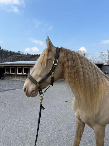 Tiberio ist ein aussergewöhnliches Pferd mit großem Potenzial für die Dressur, Vielseitigkeit und Working Equitation. Er befindet sich im gezielten Wiederaufbau, damit er seine Qualitäten voll zum Ausdruck bringen und sich in Richtung Hohe Schule weiterentwickeln kann. Er bringt bereits eine solide Basis mit: beherrscht Traversalen (Schulterherein) in allen Gangarten, Ansätze von Passage und Spanischem Schritt und springt auch kleine Sprünge (bis 80cm). Tiberio ist ein intelligenter Wallach mit viel Ausdruck und einem sensiblen Charakter. Es bereitet ihm Spass Neues zu lernen und seinen Besitzer zufrieden zu stellen. Als ehemaliger Deckhengst verfügt er über ein selbstbewusstes Temperament und benötigt daher einen liebevollen, erfahrenen Reiter, der ihm einen klaren und sicheren Rahmen bieten kann, in dem er sich voll entfalten kann. Er ist motiviert und hat Spass an einer sinnvollen, abwechslungsreichen Arbeit und genießt es sichtlich fast täglich ausgeführt zu werden. Wir suchen daher einen zuverlässigen Besitzer, der mit Tiberio genügend Zeit verbringen kann, um ihn auszuführen, zu trainieren oder auch einfach nur einen kurzen Spaziergang mit ihm zu unternehmen. Regelmäßige Anwesenheit ist etwas, das er schätzt und braucht, um sein Potenzial zu entwickeln und großes Vertrauen zu seinem Begleiter aufzubauen. Eine Ankaufsuntersuchung bestätigte seinen guten Gesundheitszustand. Zähne und Impfungen sind auf dem aktuellen Stand. Grund für den Verkauf: Wir haben Tiberio nach Empfehlungen für unsere Tochter als Erstpferd gekauft, es hat sich jedoch mit der Zeit herausgestellt, dass er einen erfahreneren Begleiter braucht. Obwohl wir ihn sehr lieb gewonnen und in unsere Herzen geschlossen haben, müssen wir uns aus diesem Grund leider von ihm trennen. Am schönsten wäre es, wenn er in seinem aktuellen Stall bleiben könnte, auf jedem Fall braucht er aber einen Stall mit täglichem Weidegang. Er ist es gewohnt 7-10 Stunden draussen zu sein.