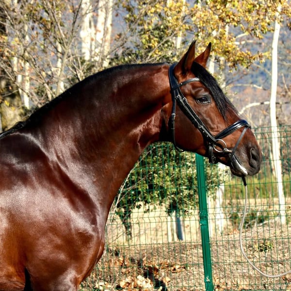 PRE met groot potentieel voor klassieke dressuur. Veel talent en hart, hoge kwaliteit van bewegingen, met grote elasticiteit, wat het zeer gemakkelijk en aangenaam maakt. Dit nobele paard is een genot. Schone straalplaten en vrij van piro.